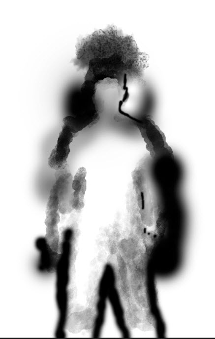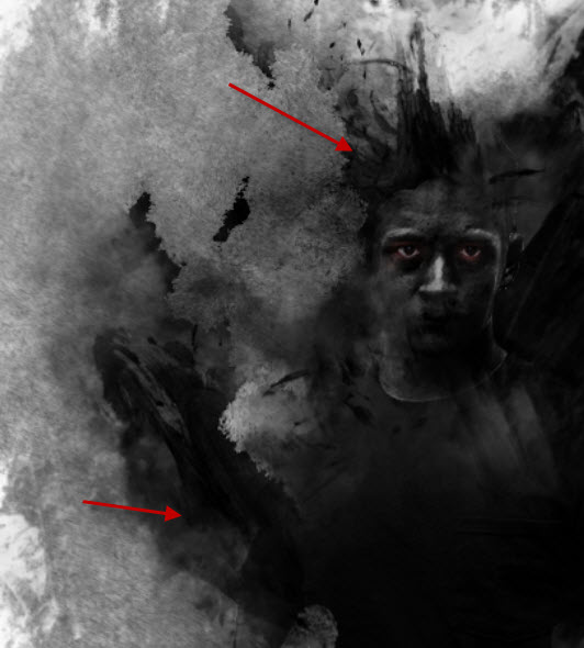 Теперь мы немного порисуем. Выберите другой набор гранж-кистей и рисуйте, создавая узор вокруг модели. Выбирайте любые кисти и включайте воображение. Убедитесь что вы рисуете в слое, который находится под слоем с моделью.