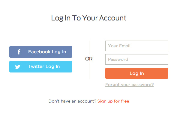 Есть два способа, которыми пользователь может залогиниться на сайте. Новый метод позволяет делать это через аккаунты в соц. сетях. Такой способ можно встретить на новых ресурсах, владельцы которых не хотят напрягать своих посетителей созданием отдельного аккаунта. Вход на сайт, используя аккаунт в Twitter или Facebook это легко: вы просто нажимаете на кнопку, ждете несколько секунд подключения к соц. сети и вуаля!