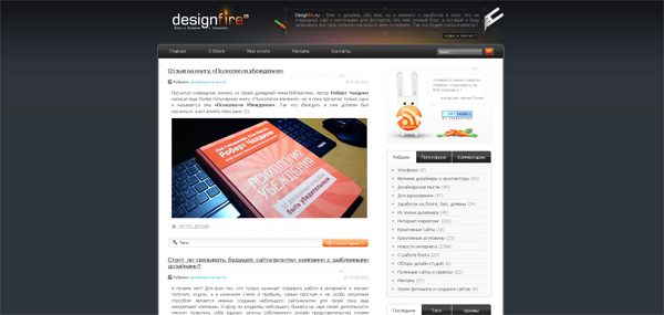 Девиз сайта — блог завёрнутого дизайнера. Его автор «поставляет» достаточно впечатляющие посты, которые помогают зарядить мозг новыми знаниями по теме. Оформление страниц достаточно минималистичное. Примеры дизайна веб-страниц размещены на главной, как примеры работ веб-дизайнера.