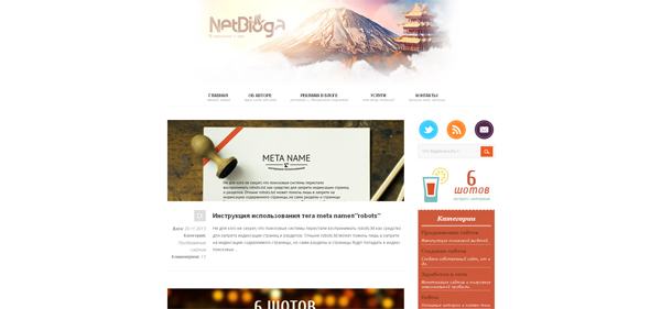 Netbloga — оригинальное название для личного дневника веб-дизайнера. Неплохая задумка в дизайне шапки. Автор блога активно следит за его развитием, частенько публикуя новые посты. Отзывчивость автора на комменты, как важный аспект ведения успешного блога, тут соблюдается.